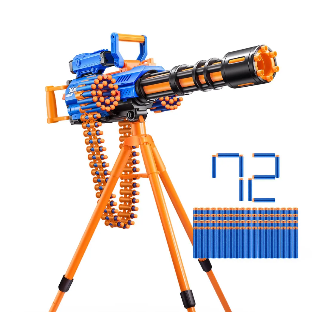 El trípode rotativo de 360 grados y el sistema de disparo vertical te permiten ajustar la dirección de tus disparos con precisión, o bien, desmontarlo para lanzarte a la batalla en movimiento. Además, viene cargado con accesorios insólitos y divertidos, incluyendo módulos de almacenamiento con capacidad para 46 dardos adicionales, para que nunca te falten municiones durante el combate.